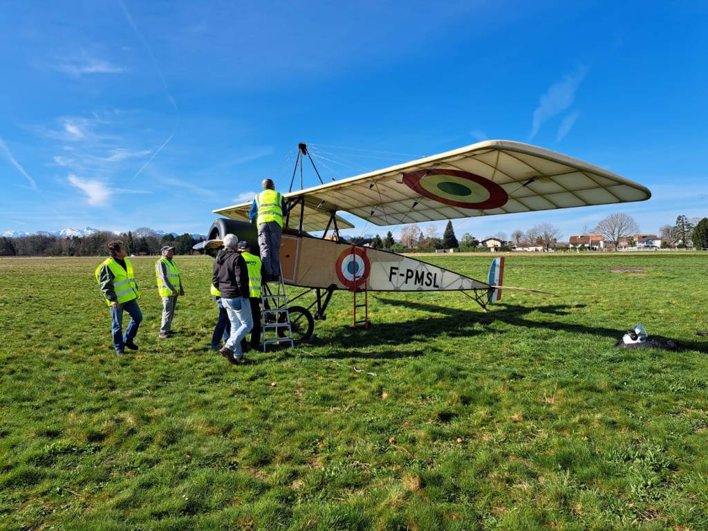 Dimanche 1er mars, après le passage obligé de la révision des 25 premières heures de vol, le Morane-Saulnier Type L-R02 a repris la voie des airs entre les mains expertes de Gilles Bellot, son pilote attitré. Petit reportage avec les photos d'Olivier Anglade et Pascal Marius